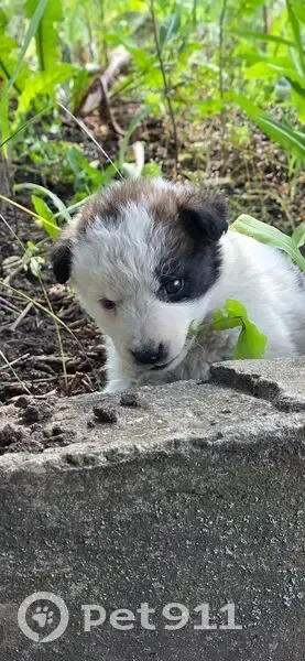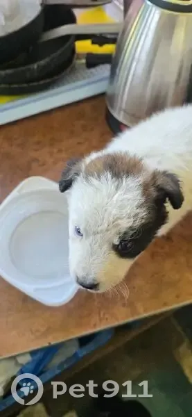 Пропал щенок, 2-3 месяца Отлечительные черты: левый глаз голубой, правый глаз черный, несколько черных пятен на задней части, черные уши и большое темнокоричневое пятно на голове.