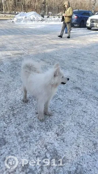 Белая собака знает команду дай лапу добрая похожа на девочку убежала в сторону планеты видели 24 февраля возле Гостиницы
