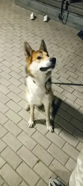 Белорыжий, на задней лапки синяя повязка, после забора крови. На груди раны от укуса. Проводились траспортировка с приюта на новое место жительства. Собака была в стрессе, сумела вырваться. Нового хозяина ещё не знает. Собаке нужна ветпомощь. Осторожный, к себе не подпускает.