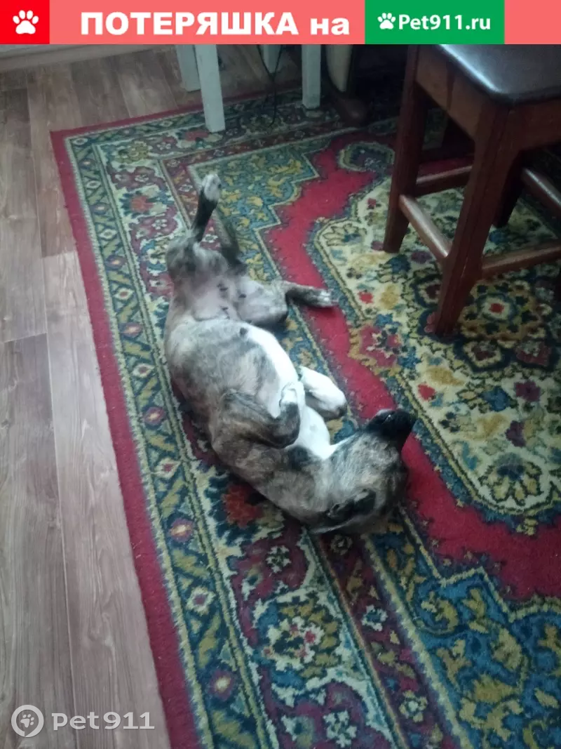 Найдена собачка, девочка, в районе Северного магазина в Черногорске. Ночевала в подъезде дома Космонавтов 41. Породу не знаю, но девочка домашняя. Окрас коричневый с полосками.
