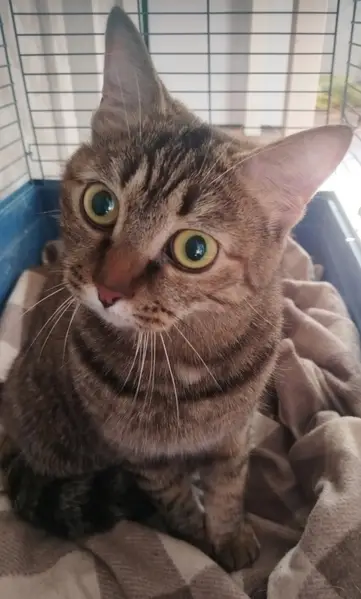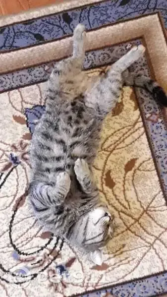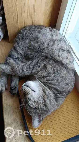 Средних размеров, худенький, не кастрирован, окрас полосатый, на мордочке шрам справа, сломан верхний левый клык. По возрасту около 6 лет. Недавно приходил с улицы в царапинах, боевой.
