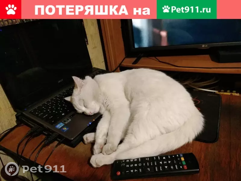 Белая кошка, возраст около 1 год, с серым ошейником пропала 3 апреля вечером на улице Добролюбова 83\2.