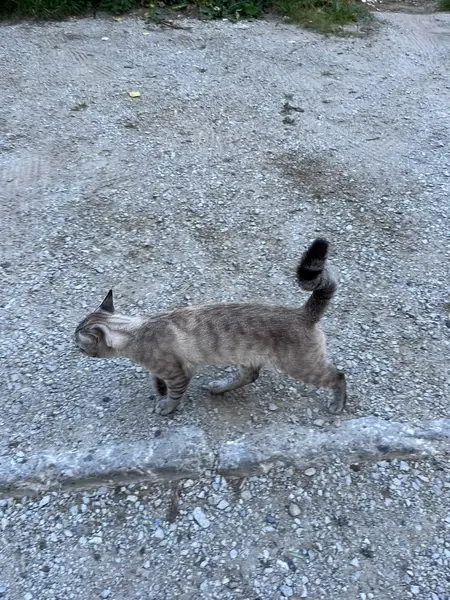 Сиамская кошка голубые глаза, сильно похудела после пропажи, боится людей и не подпускает никого, ко мне подошла один раз и поела поймать не смогла и больше не подходит
