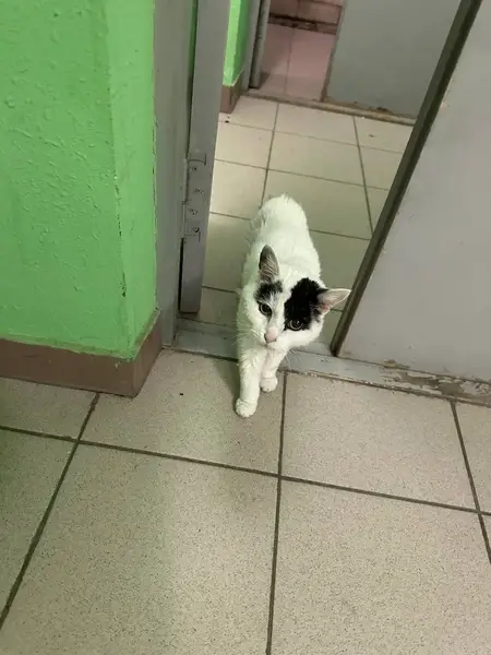 Найден котенок (кошка) на ул. Маяковского. Вылезла вся в дорожной грязи из под газельки, возможно приехала в ней. Сильно плакала. Кошке на вид 4 -5 месяцев, знает лоток, похоже была домашней. Белая, черное пятно на голове, черная отметина между глаз, черный хвост. Может найдутся хозяева или желающие приютить это чудо.