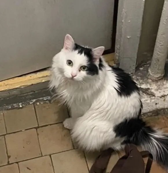 Найден котик, бегал сутки в нашем дворе за людми, просился в подъезд. Видно что домашний. Котик добрый, кушает натуральную еду. Корм для кошек вообще не естт