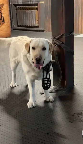 Лабрадор, белого цаета, кличка Рэй. Ласковый, добрый, выбежал со двора