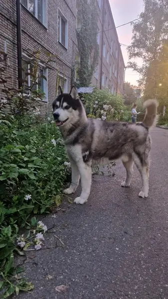 Хаски, мальчик, до 5 лет, бело-голубые глаза. Сидел у нашего дома, забрали его на передержку, ищем хозяев. Со шлейкой, наверное убежал и потерялся. Добрый, контактный, воспитанный.