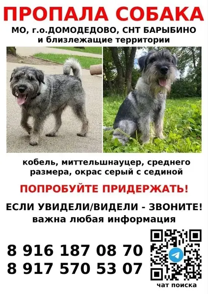 Найдена Миттельшнауцер, девочка, цвет соль с перцем, возможно приехала на электричке из Москвы или области. Впервые была замечена на платформе МЦД Битца. Собаку ловили 3 дня. Придержана. ️ 89055902425