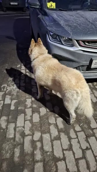 Кобель, окрас палево-рыжеватый. Собака стройная, длинные ноги, стоячие уши. Похож на лайку. Хвост обычно кольцом, но может распускать — особенно когда устал или в панике. Оказаться может в любом районе и ближайших областях