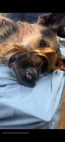 Сука, 8 лет, стерильна, на носу небольшая царапина с правой стороны, на задних лапах шестые пальцы с вросшими когтями. Вес примерно 30кг, окрас овчарий, чёрный с бежевым. На ней был красный ошейник, кличка Стелла. Собаку скорее всего куда-то вывезли. На момент пропажи была упитанная