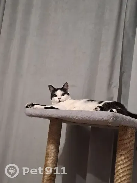 Окрас: белый с черными пятнами , на подбородке пятнышко в Виде сердечка ,пропал вчера вечером вероятнее всего выпрыгнул с балкона за птицами. Самый любимый кот . Завут Локи