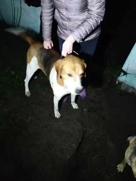 Порода -эстонка. Окрас белый, уши коричневые. На спине коричневое бледное пятнышко. Девочка, откликается на кличку Данка. Не агрессивная. Потерялась в районе Травкино, Луговое, Расковка. Собака уже не молодая, ей может быть тяжело ходить, может нуждаться в помощи.