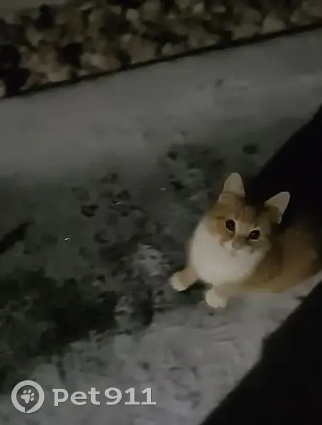 Рыжая кошечка, возможно ушла с участка (не пускают в дом)нос красный. Видно домашняя, пухленькая,трётся об ноги, просит на руки взять. Взять не смогла, стояла на автобус ( живу в другом городе). Ошейника не обнаружила.