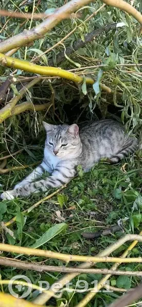 Кот высокий , окрас серый с белым полосатый/мраморный , большие глаза . Утром как обычно ушел гулять и не вернулся . Кастрированный . Гладиться дается через раз . Иногда , когда зовешь его , он ложится на спину и вытягивается т. К чувствует ласку от человека.