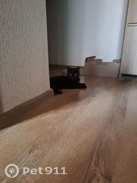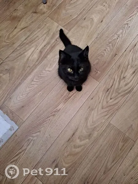 Найдена кошка. Полностью черная. Возраст около года. Бежала по трассе между деревнями. Искать хозяев не было возможности. Место, где нашли примерное. От посёлка Морки недалеко. На шее след от ошейника. Кошка сейчас в Йошкар-Оле.