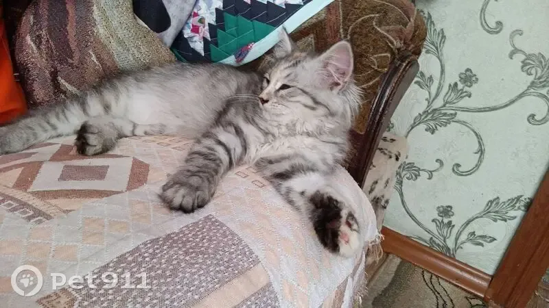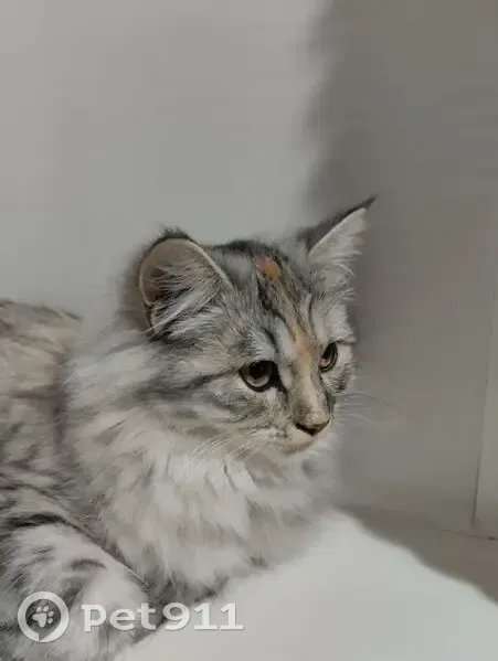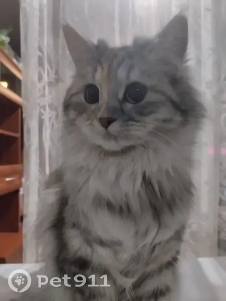 Кошка беспородная, возраст 8 месяцев, окрас серый в чёрную полосу на лапах и ниже груди, воротничок белый и сильно опушённый, лапы чёрные на подушечках, одна наполовину белая на подушечках и там розовый пальчик, хвост очень пушистый, сверху и немного кбоку чёрная "ёлочка". Глаза светло-жёлтые, окаймлены чёрным, усы чёрно-белые, ресницы короткие, около ушек шерсть словно рожки, мордочка по краю тоже опушена, сверху небольшое вкрапление рыжей шерсти (на теле тоже присутствуют рыжие пятна, но не сильно выделяются). ОДИН БОК ВЫСТРИЖЕН ПОСЛЕ СТЕРИЛИЗАЦИИ, КОШКА НУЖДАЕТСЯ В УХОДЕ И ПРИСМОТРЕ.