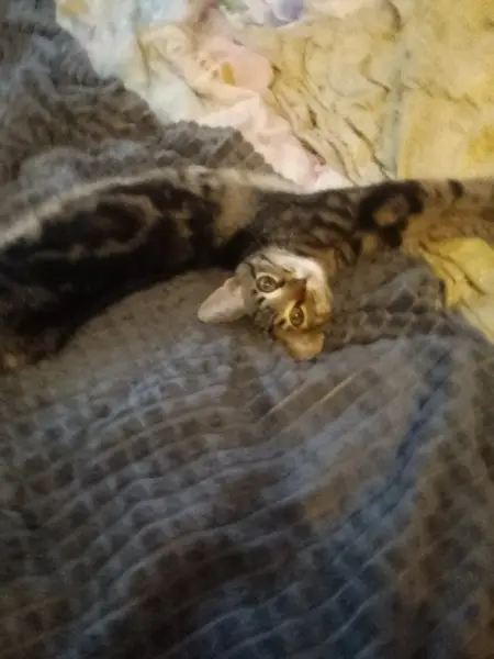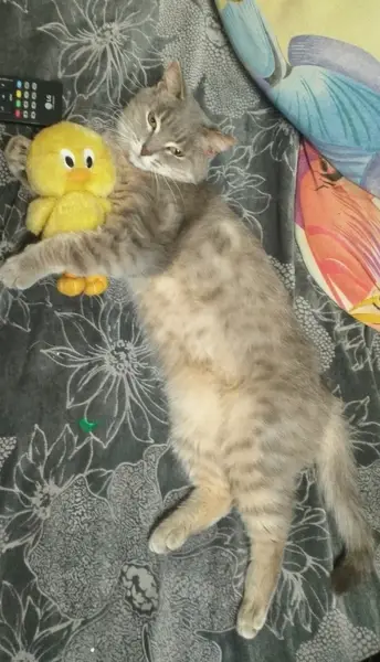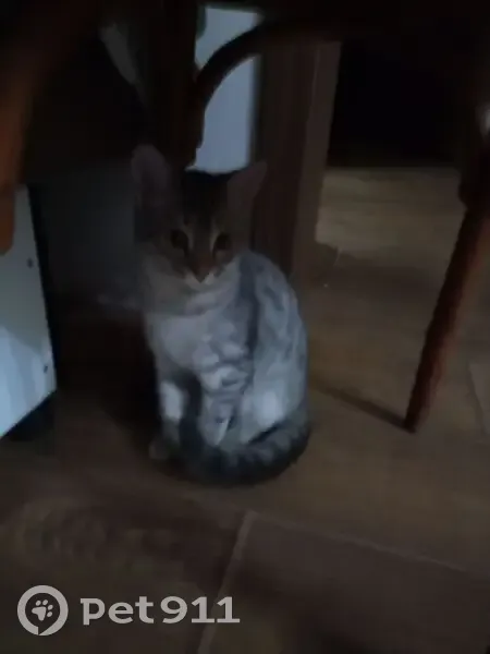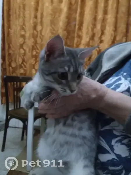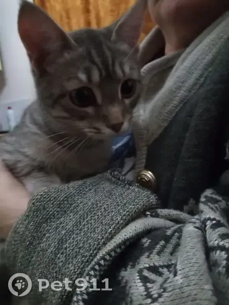 Окрас серый с полосочками и пятнышками. Животик и грудка светлее. На ушах маленькие кисточки. Приблудилась в подъезд дома по адресу: г. Бор, ул. Красногорка, 10. Кошке на вид примерно 4-5 месяцев. Кошечка ласковая, видно, что домашняя. Ищем хозяев.