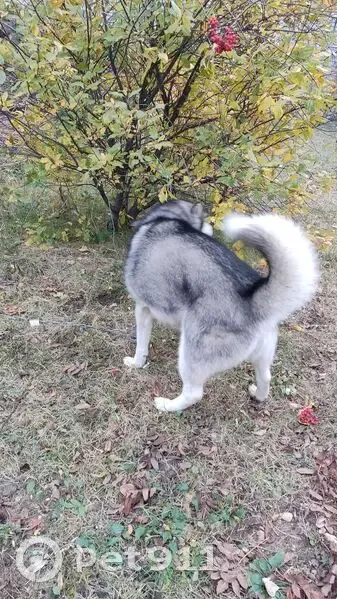 Найдена потеряшка хаски девочка, разноглазая (голубой/карий), в голубом ошейнике, прибежала вместе с цепью. Находится напротив входа в садик, слева от крыльца в маг. Бегемот.