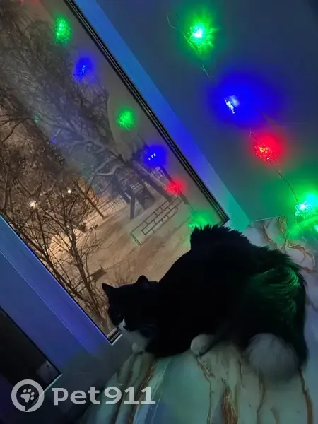На нем салатовый ошейник. Гулял всегда рядом с домом. Коту год, он маленький и ласковый,ко всем подходит гладиться,не стесняется, Окрас: черно-белый, на хвостике белая кисточка. Откликается если просто позвать.