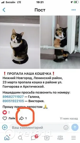 Кошка пропала на Героя Ивлева...