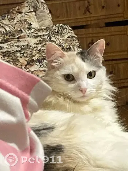 Привезли в другой дом, убежала. Зовут Боня, очень приметная: яркая белая шерсть в пятнышки серые и рыжеватые, очень набитый хвост. Пропала в конце ул. Садовой красного моста! Обыскали район, покыскали, не нашли.
