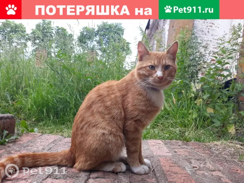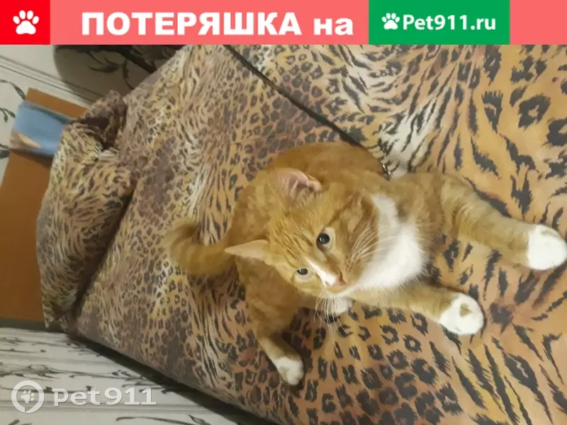 Рыжий кот по кличке Макс, короткошерстный, с белой грудкой и белыми "тапочками". Глаза оливковые. Пятнышко белое на носу.