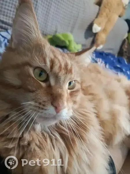 Рыжий крупный кот, глаза жёлтые, так как он мейн-кун, у него на ушах волосы сверху. Живём в своём доме, он сбежал погулять, и нету его уже 2 день. Прошу, пожалуйста, помогите найти за вознаграждение