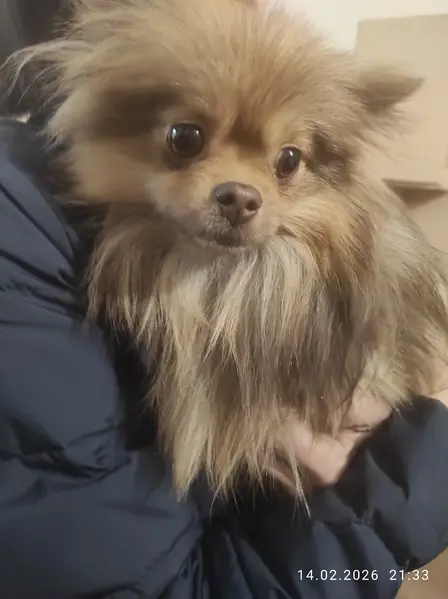 Шпиц, бежевый. Девочка. Ручная. Сразу на руках уселась. Рыбачили.