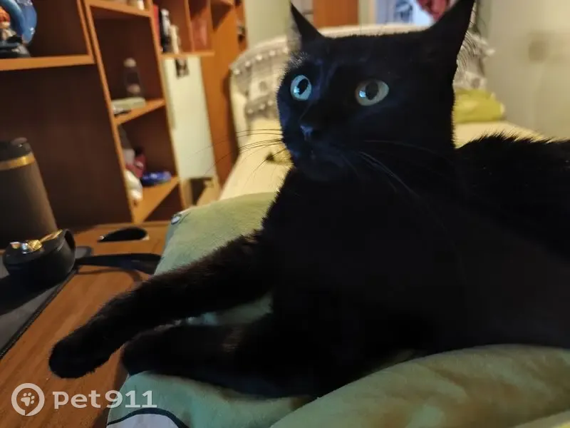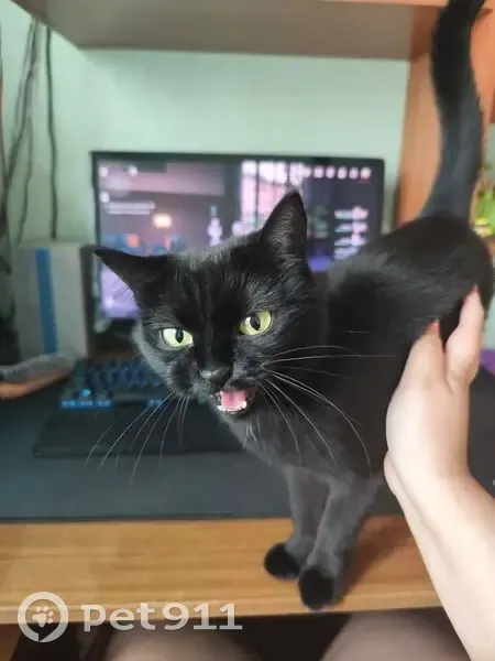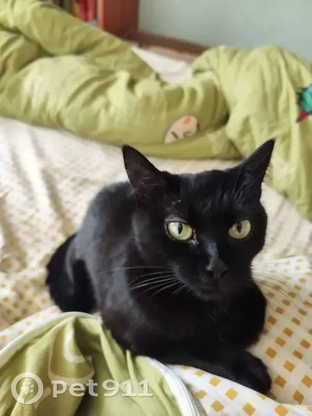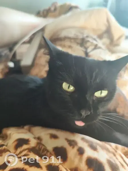 Ей 7 лет. Очень пуглива, полностью черный окрас. У нее из зубов осталось только 4 клыка (из-за гингивита). Есть заживающая ранка над левой бровью и в левом ухе (расчесывала когтем).