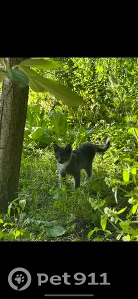 Котенок-мальчик серый ( без породы ), имеет белые пятна на животе, немного напоминающие перевернутые сердца, котенку 5 месяцев, очень ласковый отзывается на Перси или Персик. У него зеленоватые глаза и небольшая белая область на шее