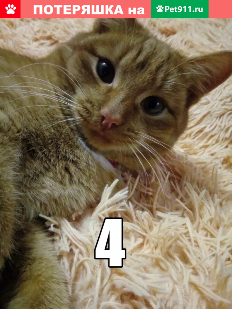 4. Потерялся кот в д.Зверево зовут Рыжик возраст 11 месяцев розовый ошейник если нашли звонить по номеру тел.