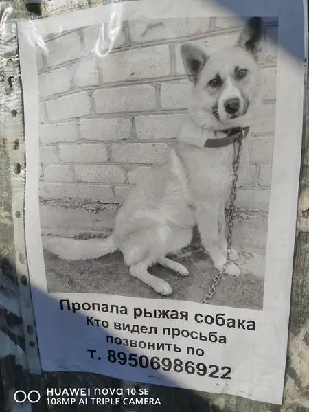 К нам пришел вот такой большой белый друг в брезентовом ошейнике. Идет на контакт, поводка не испугался. На вид был голоден, проглотил килограмм мяса и не заметил. Сегодня его видели скитающийся во дворах за д/с Дюймовочка, т/ц Мельница, центральный рынок. Сейчас у нас дома. на вид до года. Помогите, пожалуйста найти хозяина!!!! телефон
