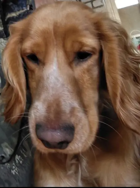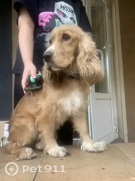 Спаниель, светло-коричневый (бежевый) окрас, ошейник