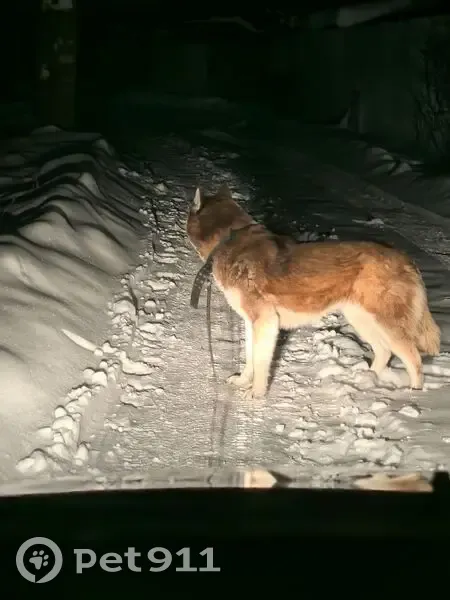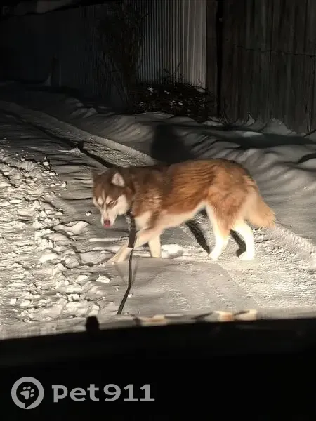 Найдена хаски! Девочка. Рыжая. Фокинский район, тер. Ходаринка (СО Ковшовка). Бегала по проезжей части. На ней широкий ошейник и очень длинный поводок. Боится машин на дороге.