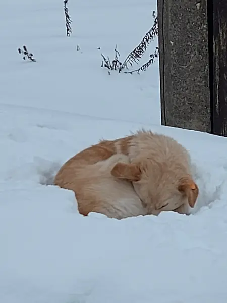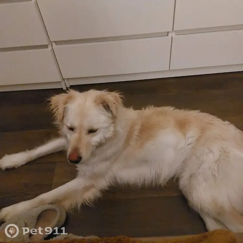 Добрая и ласковая собака. Светлый окрас, скорее всего девочка. Была найдена в ошейнике.