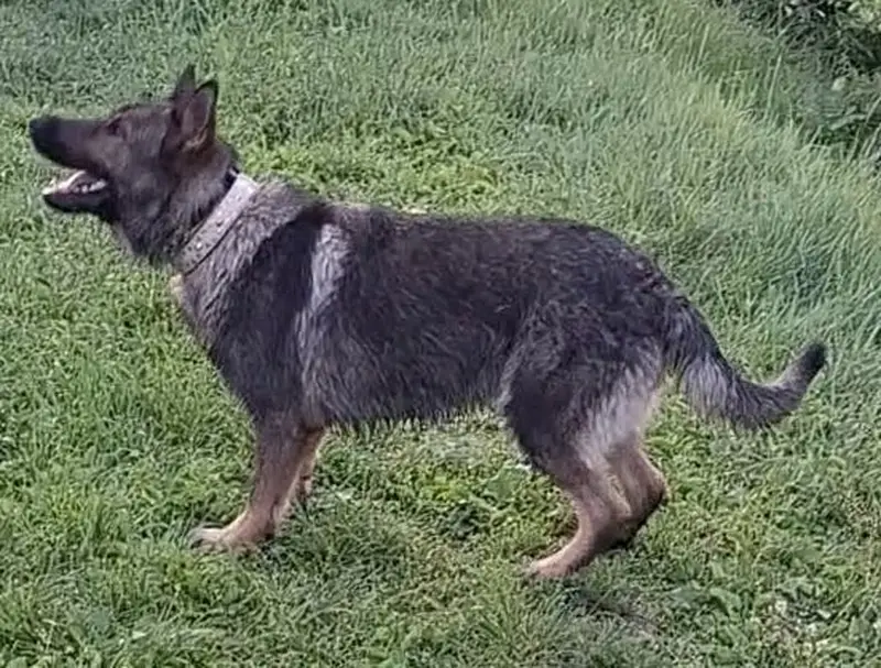 С ошейником, похож на овчарку