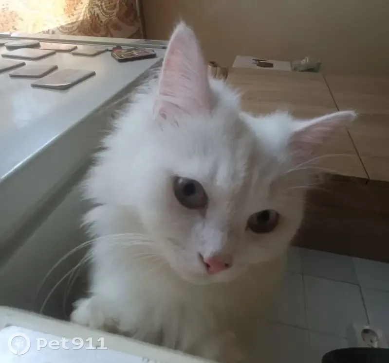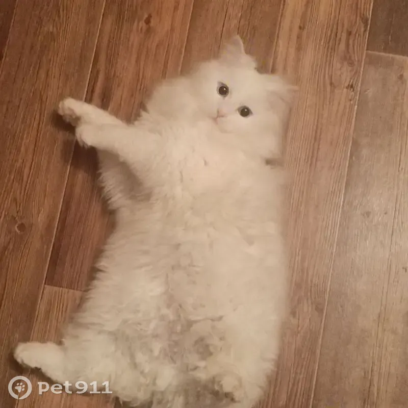 Полностью белый, только на носу есть маленькое пятно (Его видно только на 3 фотографии. Оно появилось со временем), у него очень пушистый хвост. По поведению он более менее спокойный, нечасто мяукает, игривый.