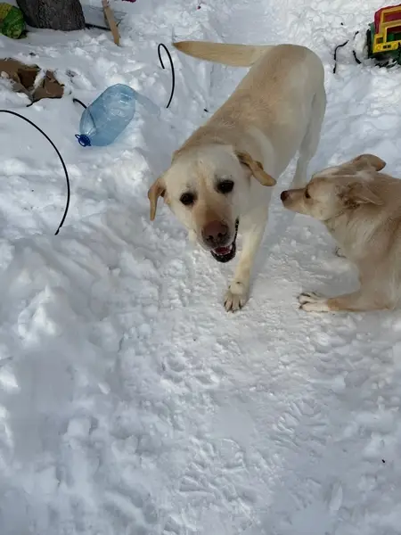 Пропал лабрадор палевого цвета в районе лагеря Искорка 10. 01. 2019г. Отзывается на имя Скай, клеймо на ушке.