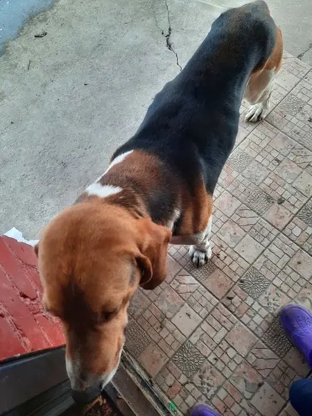 Зовут Тимафей. Такса, толстенький, не агрессивный, на мордочке белые волосы.