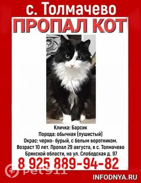Потерянные животные Брянск, фото: Пропал кот, Брянск, Верхняя Лубянка, 50