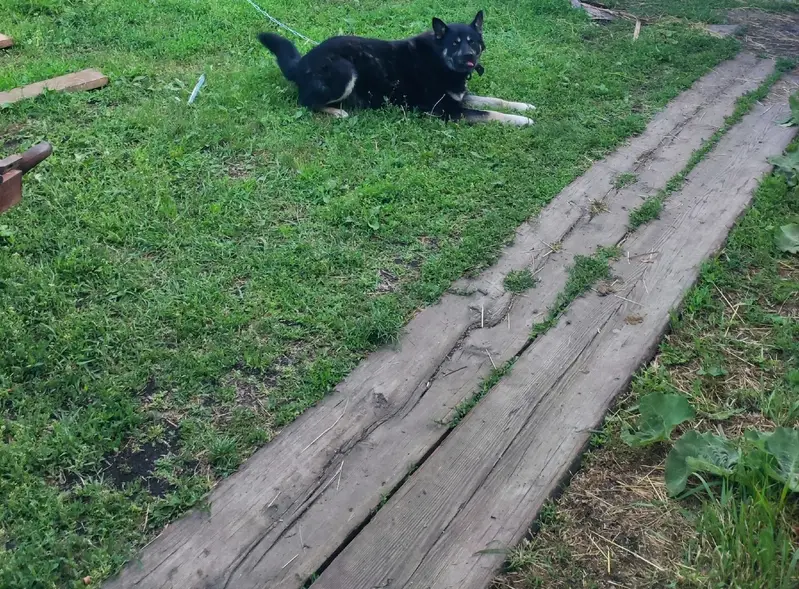 Кобель, помесь восточноевропейской овчарки, молодой ухоженный, с новым ошейником