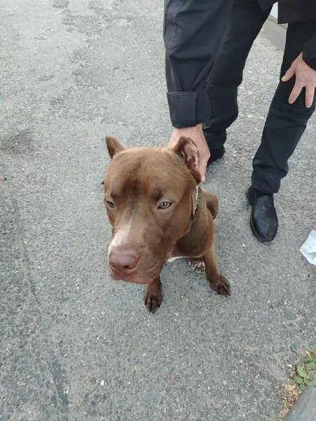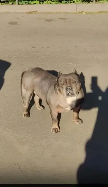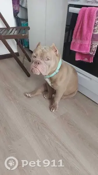 Светло-бежевый(лиловый), на груди большое белое пятно с неровными краями, немного выступает нижняя челюсть. Меня (хозяйку) забрали в отделение полиции 87, он остался у соседей, которые утверждают что его 20.07.2025 примерно с 11 до 14 забрали полицейские, до сих пор его местонахождение неизвестно!