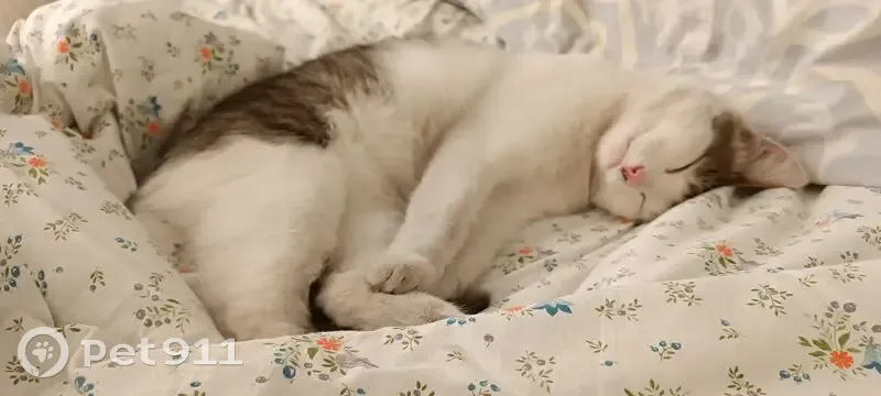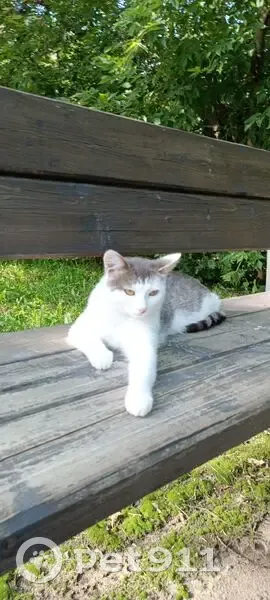 Коту чуть меньше 3 лет. Окрас бело -серый, лапы высокие белые, на задней ноге сверху серо-бежевое пятно. На голове как серая шапочка, нос розовый с пигментной полоской с левой стороны. Любит сидеть под машинами. Скромный, нежный, пугливый. Может попросить помощи, когда человек один. Имеет негативный опыт уличной жизни. Рожден от бездомной кошки и был пристроен волонтёрами в семью, которые выкинули его в 30 мороз. Находился на само выгуле,т. К. Лоток игнорировал, но со двора никуда не уходил. Прибегал, отзываясь на Масю.