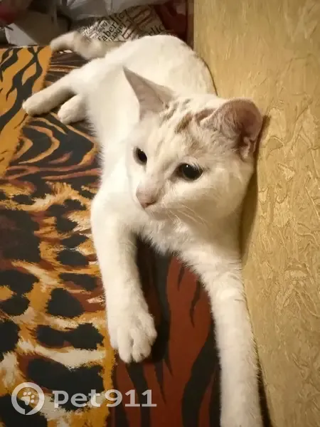 По улице ленинградская дом 109 в вечернее время обнаружен котёнок белого цвета. Мы видели что котёнок бегал за людьми в итоге я его взяла на руки. Мне он показался очень худым и слабым. Принесла его домой и при электрическом освещении увидела, что у него окрас ушек макушки и хвостика персикового цвета, по возрасту примерно 4-5 месяцев. По внешнему виду- чистенький, не видно что он жил на улице, насекомых также я не увидела. Когда принесли, сразу не стал кушать, но сейчас ест всё подряд.