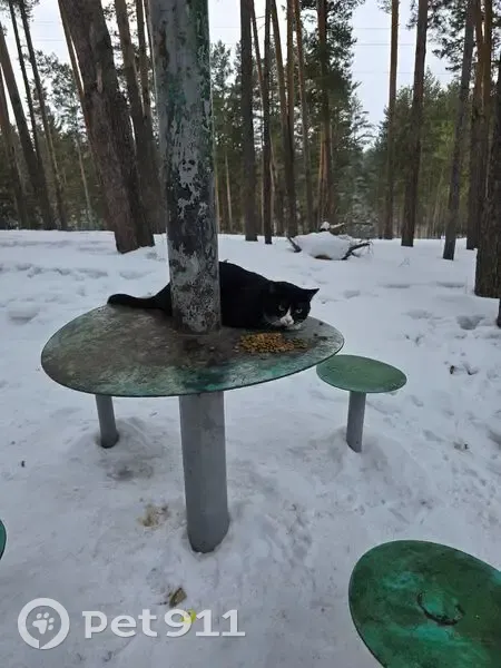 В лесу на АБ найден молодой кот, некастрированный. На шее розовый противоблошиный ошейник, когти подстрижены, упитанный. Окрас – черный с белыми «носочками» и немного белого на мордочке.