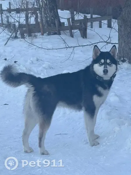 Хаски, предположительно девочка, на ней был ошейник зеленый брезентовый