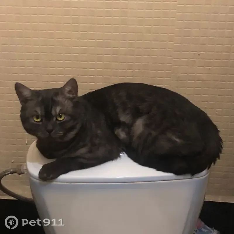 сбежал через окно.. Уже долго не можем найти. Темно-серого цвета, желтоглазый. Вредный немного, на улице пугливый, к незнакомым не подходит обычно.. Но я очень надеюсь, что его кто-то нашел и забрал себе…