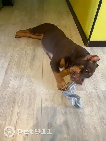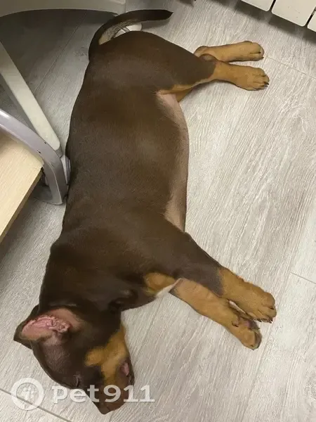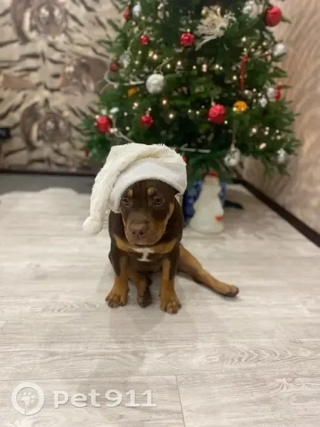 Испугалась фейерверка и вырвалась. На ней серый поводок длинной около 1.5 метров. Окрас темно коричневый, триколор, вес около 15-17 кг. Собака короткошерстная, на улице не выживет