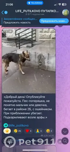 Поиск домашних животных, фото: Найдена собака, Путилково