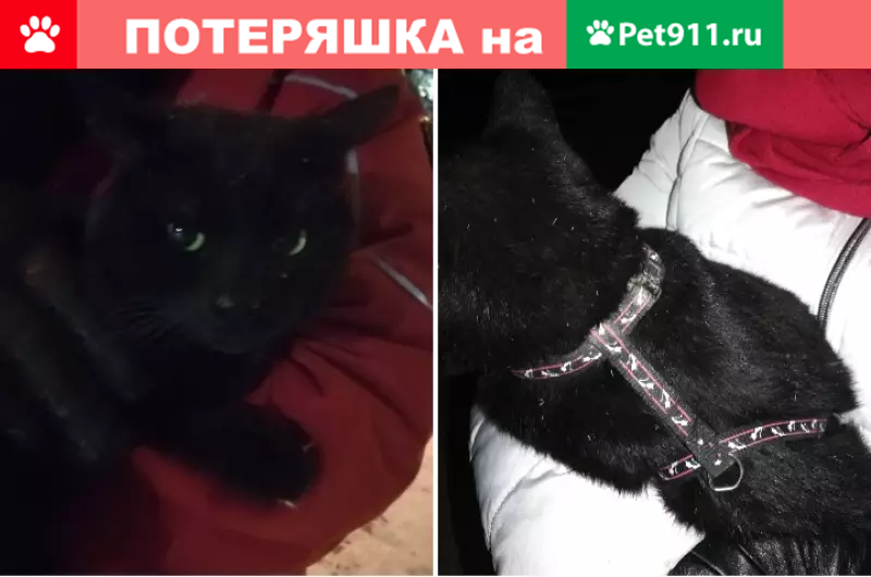 Чёрный кот со шлейкой был найден 8 января в 2...